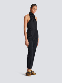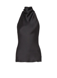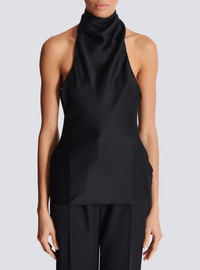 Backless crepe satin top - Draped-effect high neck - Neck fastening with hooks - Flowing fitted cut - Model measures 179cm and wears a size 36 - Main material: 100% silk - Made in Portugal - Item: FF1AE165SE94 100% of this item’s silk fibres are certified and produced by silkworms