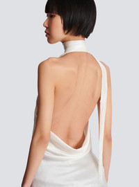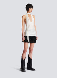 Backless crepe satin top - Long tie straps - Long fringed trim - Low-cut front - Raw hems - Loose fit - Model measures 178cm and wears a size 36 - Main material: 100% silk - Made in Portugal - Item: FF1AG705SE94 100% of this item’s silk fibres are certified and produced by silkworms