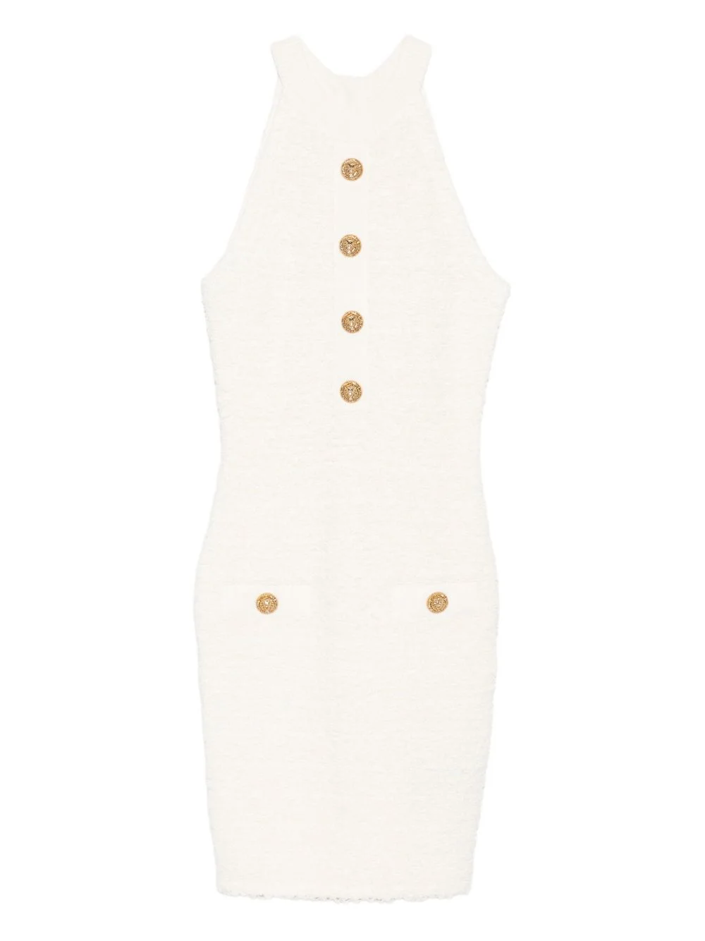 button-detail mini dress Highlights - White - Textured effect - Gold-tone buttons - Sleeveless - Round neck Made in France Composition Viscose 55%, Hemp 45% SIZE & FIT Model measurements Height 5 ft 11 in(1.8 m) Bust/Chest 31.49 in(80 cm) Hips 36.61 in(93 cm) Waist 24.4 in(62 cm) Washing instructions Read Manufacturer Guidelines