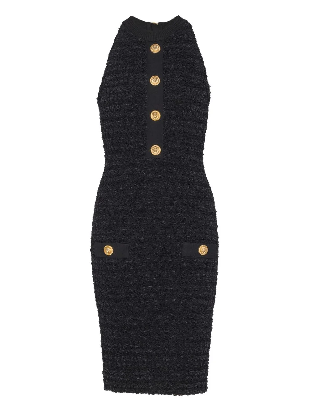 buttoned-pocket tweed mini dress Highlights - Black - Tweed texture - Gold tone buttons - Sleeveless design - Two pockets - Concealed zip fastening Made in France Composition Viscose 55%, Hemp 45% Washing instructions Read Manufacturer Guidelines