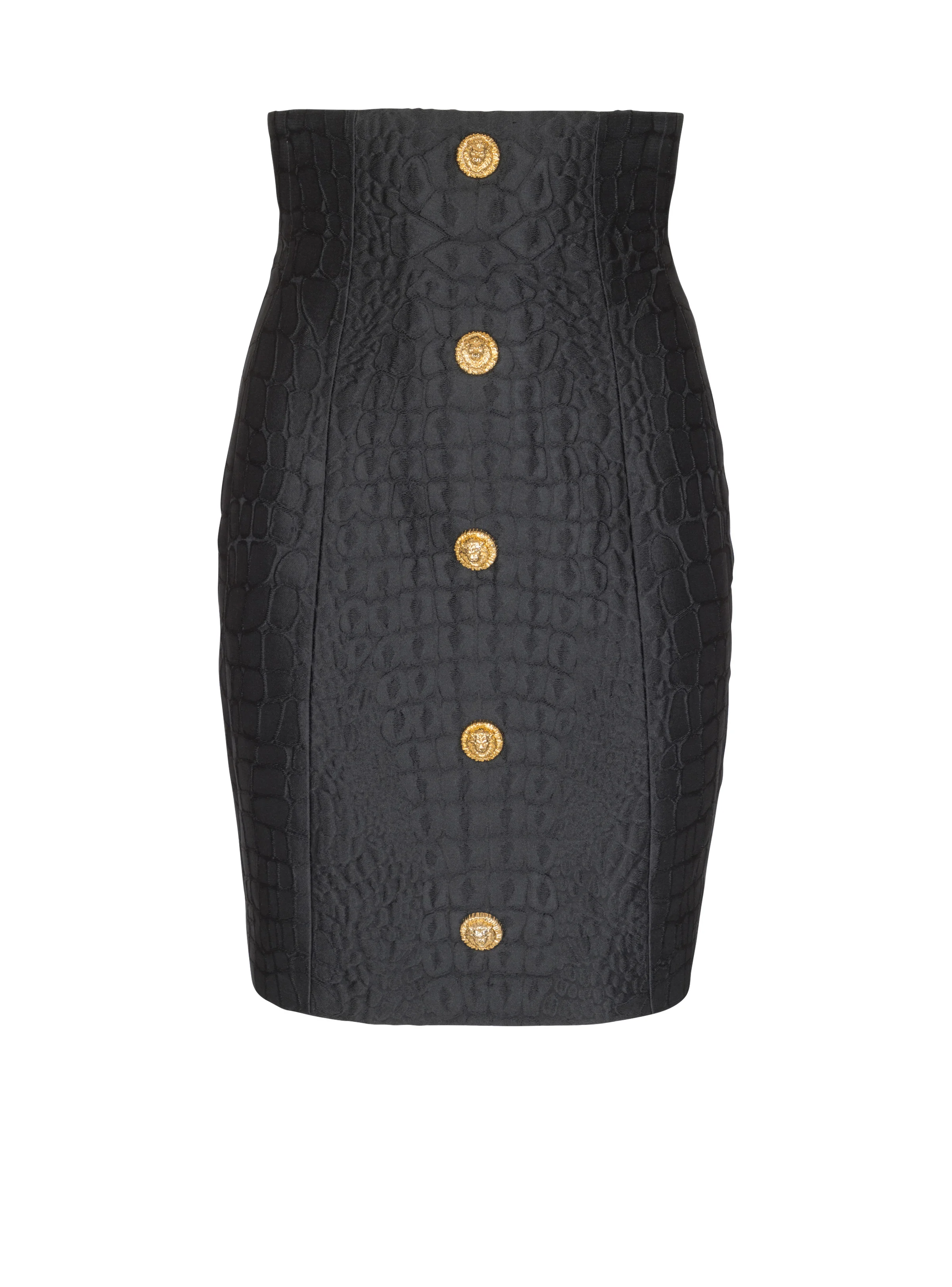 Crocodile-look pencil skirt - 6 gold buttons on the front - Knee-length - Fitted cut - Main material: 77% polyester 17% silk 6% acrylic - Made in Bulgaria - Item: FF0LBB13XL45