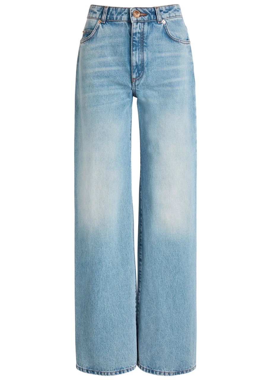 Info & Care Balmain denim jeans; Mid-rise fit, straight-leg cut, belt loops, five pockets, designer plaque at back, designer-engraved hardware,;whiskered and faded finish; Partially concealed button and zip fastenings at front; 100% cotton; Machine wash inside out to avoid colour transfer Size & Fit Front rise: 9.5 inches/ 24cm Inside leg length: 33 inches/ 84cm Midweight; Model is 5'10"/ 178cm and wears a size FR36