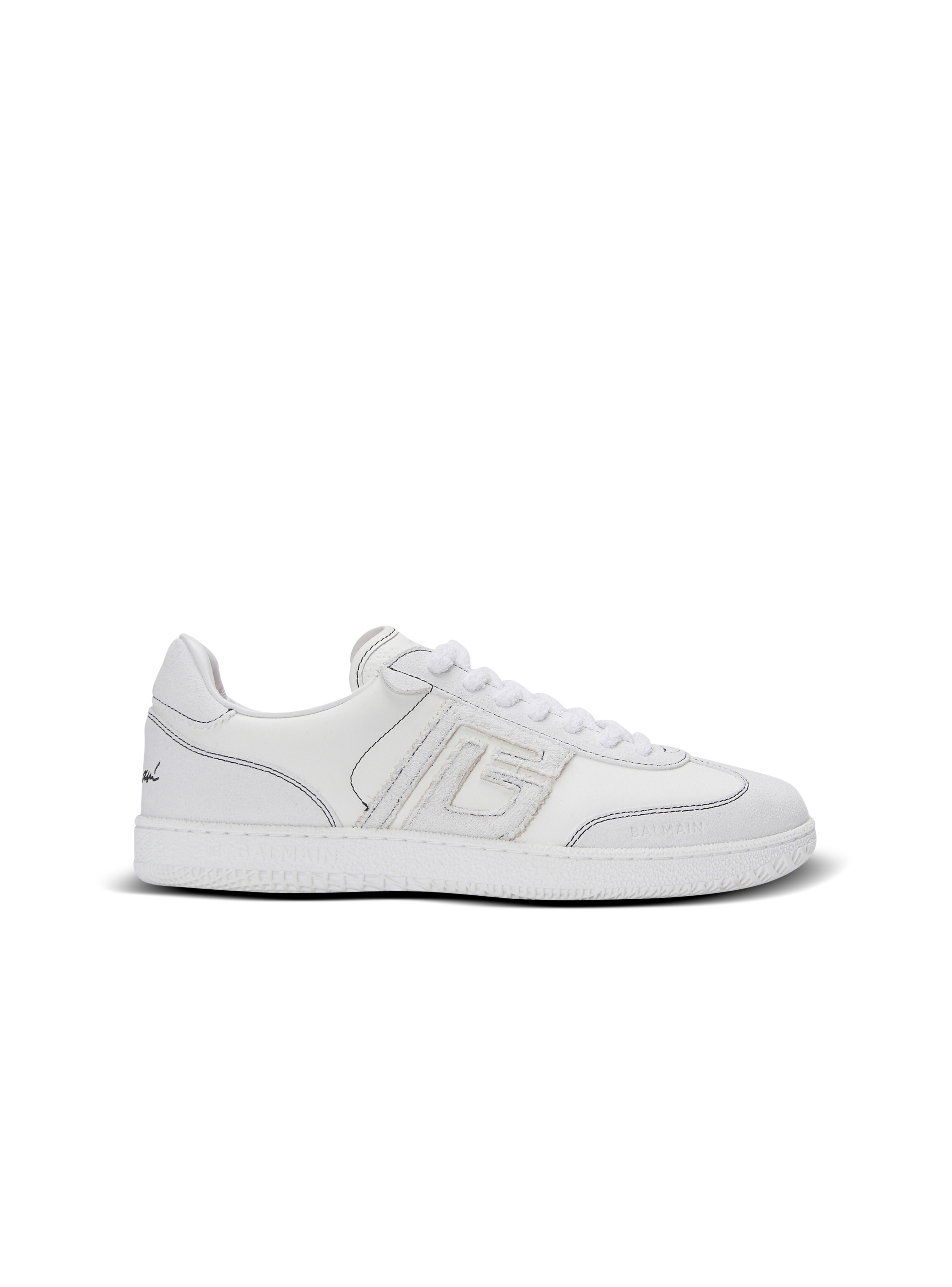 Balmain Swan trainers in calfskin and suede - Multi-material design in suede, calfskin and textured mesh - Textured lace fastening - Diamond-embossed leather tongue with PB logo - PB logo inserts in textured mesh on the sides - Balmain "Love Letter" logo on the back - Contrasting topstitching - Textured rubber outsole with raised Balmain logo - Leather lining - Contrasting leather insole - Main material: 100% calfskin - Made in Italy - Item: EN1VI735LCBJ