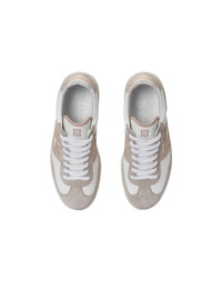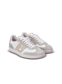 Balmain Swan trainers in calfskin and suede - Multi-material design in calfskin and suede - Textured lace fastening - Diamond-embossed leather tongue with PB logo - Contrasting PB logo on the sides - Embossed Balmain logo on the side - Contrasting panel with embossed Balmain Paris logo on the back - Textured rubber outsole with raised Balmain logo - Leather lining - Leather insole - Main material: 100% calfskin - Made in Italy - Item: EN1VI735LCJN