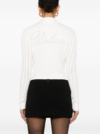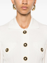 ribbed cardigan Highlights - White - Front press-stud fastening - Ribbed cuffs and hem - Jacquard logo motif - Polo collar Made in Italy Composition Viscose 84%, Polyester 16% SIZE & FIT Model measurements Height 5 ft 10 in(1.77 m) Bust/Chest 31.88 in(81 cm) Hips 36.22 in(92 cm) Waist 24.01 in(61 cm) FittingInformation Designed for a close fit throughout Made with a midweight knit, this piece offers some stretch