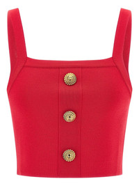 button-detail top Highlights - Red - Square neck - Three front lion buttons Made in Italy Composition Viscose 85%, Polyester 15%