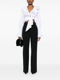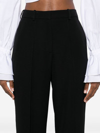 tailored grain de poudre trousers Highlights - Black - Concealed front fastening - Belt loops - Two side slash pockets - Vertical seamed Imported Composition Outer: Virgin Wool 100%, Viscose 100% Lining: Viscose 52%, Cotton 48% SIZE & FIT Model measurements Height 5 ft 10 in(1.77 m) Bust/Chest 34.64 in(88 cm) Hips 35.43 in(90 cm) Waist 24.8 in(63 cm) FittingInformation Designed with a wide-leg cut, these trousers allow for a close fit at the waist and offer a loose and roomy fit over the leg Made from a midweight non-stretch fabric