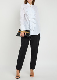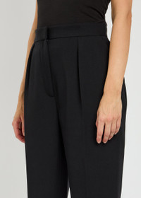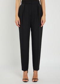 Info & Care Balmain wool trousers Pleats at waist, two side slip pockets, pressed creases through legs, fully lined Concealed button, hook and zip fastenings at front; 100% virgin wool; lining: 52% viscose, 48% cotton Dry clean; Size & Fit Inside leg length: 29 inches/ 74cm Midweight Tapered-leg cut Model is 5'9"/ 175cm and wears a size;FR36