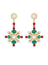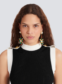 Baroque pendant earrings - Base embellished with a bead - Gold brass setting - Geometric bead- and crystal-encrusted shape - Stud fastening with push clasp - One size - Main material: 100% brass - Made in Italy - Item: FN4XI513MPYB
