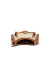 B-Buzz Hobo bag in leather and canvas - Carry in the hand, on the shoulder or across the body - Removable and adjustable leather shoulder strap with snap hooks and B press studs - Flap with B clasp and magnetic press stud - Metal "B" details - Contrasting topstitched leather details - Inside leather pocket and card pocket - Twill lining - Gold hardware - Dimensions: 7 x 28 x 15 cm - Main material: 58% cotton 42% linen - Made in Italy - Item: DN1BT905TCFE