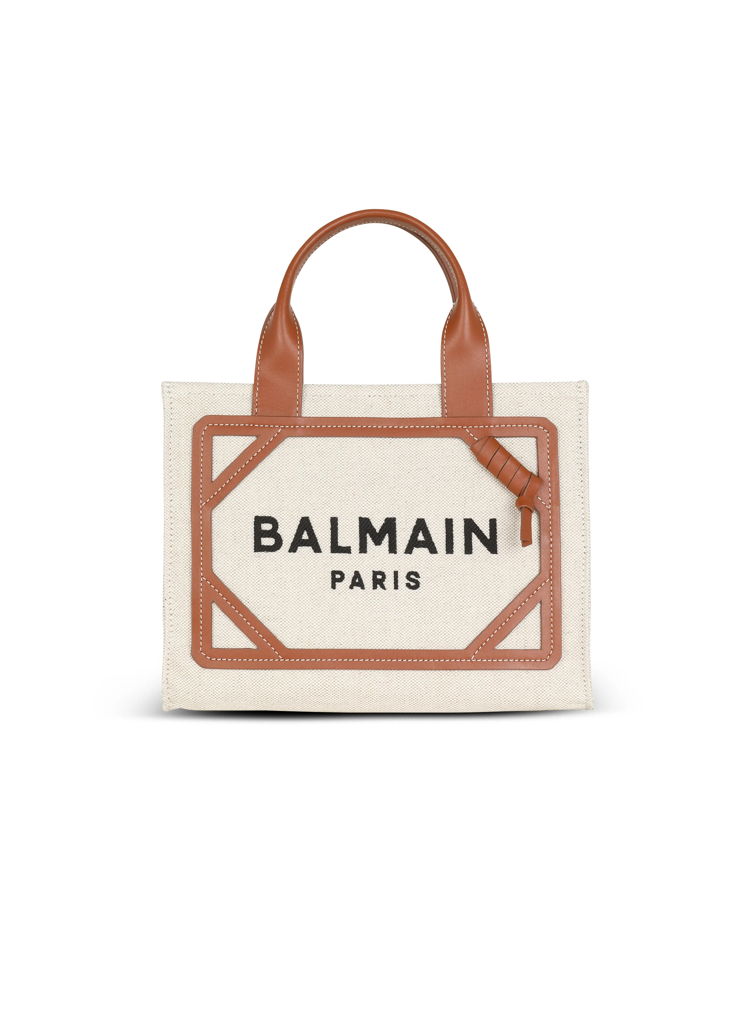 B-Army small canvas shopping bag with leather inserts - Leather handles - Printed Balmain logo - Interior welt pocket - Comes with a protective cover - Dimensions: 8 x 26 x 20.5 cm - Main material: 58% cotton, 42% linen, calf leather - Made in Italy - Item: DN1FE809TDCS