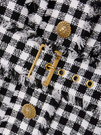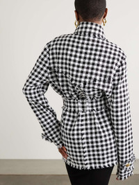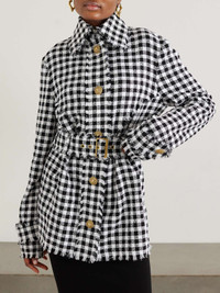 EDITORS'NOTES Balmain's tweed designs have an enduring, timeless appeal. This overshirt is patterned with classic houndstooth and embellished with the brand's signature gold-tone braided buttons. The frayed trims add a slightly relaxed feel. Cinch the waist belt and style yours with flared jeans and Mary Jane sandals. SIZE & FIT - Fits true to size, take your normal size - Designed for a relaxed fit - Mid-weight, non-stretchy fabric - Model is 177cm/ 5'10" and is wearing a FR 36 DETAILS & CARE - Black and white cotton-blend tweed - Button fastenings through front - 90% cotton, 10% polyamide - Dry clean