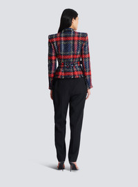 Belted plaid tweed jacket - Italian tailored collar - Long sleeves - Structured shoulders - Anthem belt at the waist - Frayed edging - Fitted cut - Model measures 175cm and wears a size 36 - Main material: 31% acrylic 21% cotton 21% polyester 11% polyamide 9% merino wool 3% linen 3% viscose 1% metallic polyester - Made in Bulgaria - Item: GF1SI634XL68