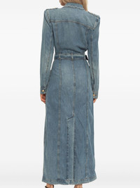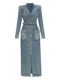 belted denim maxi dress