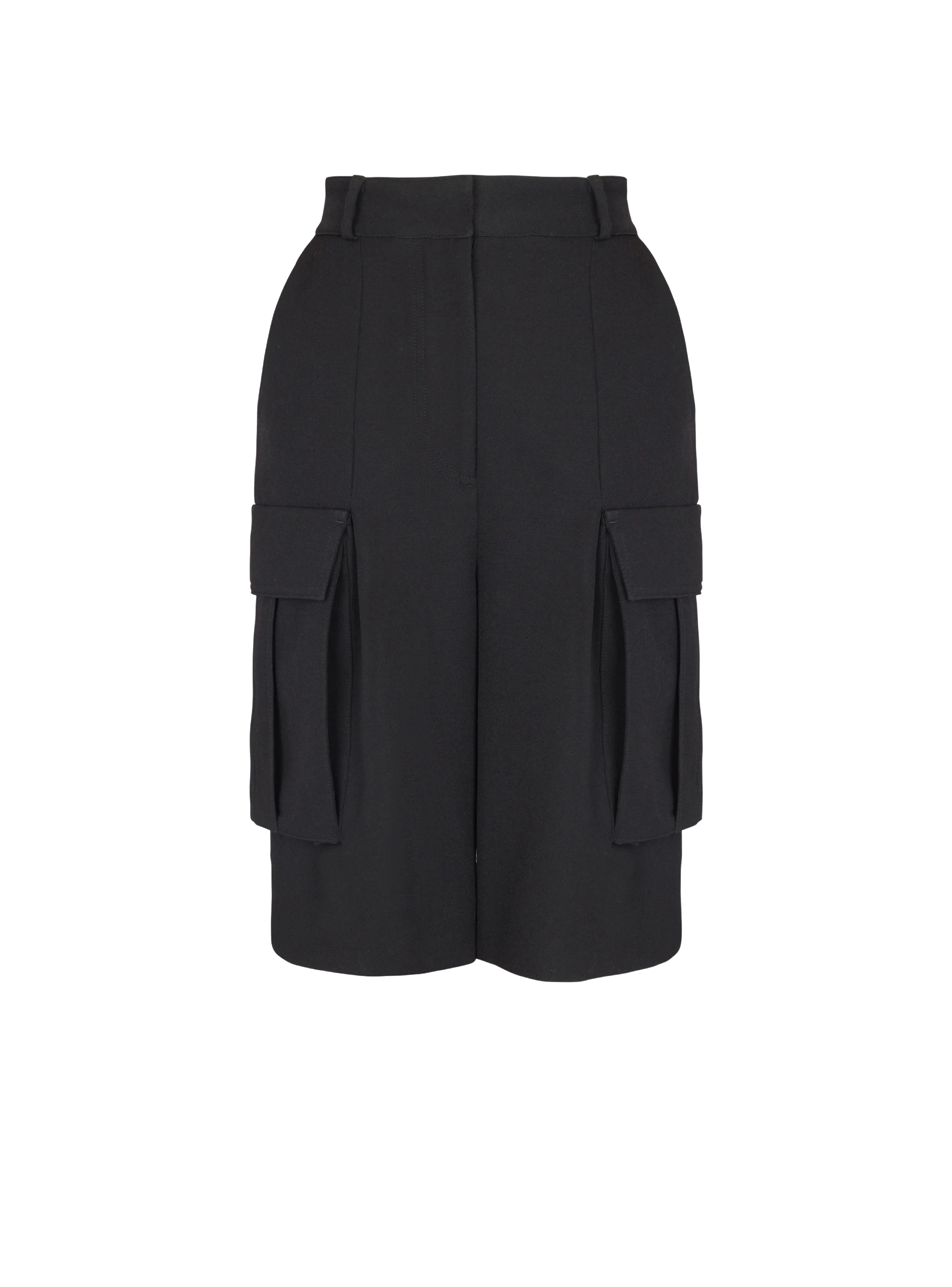 Pleated cargo-style Bermuda shorts in grain de poudre wool - Waistband with zip fly and hook - Italian side pockets - Large bellows pockets with a press-stud flap - Relaxed fit - Model measures 178cm and wears a size 36 - Main material: 100% sheep's wool - Made in Bulgaria - Item: FF0PA355WC09100% of the wool fibres used to make this garment are sourced from sheep farms that are certified and animal welfare-friendly
