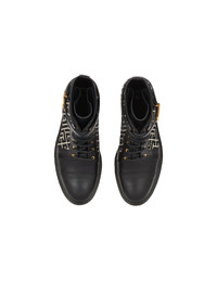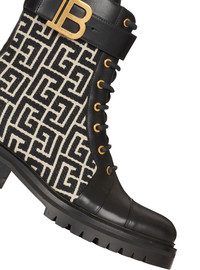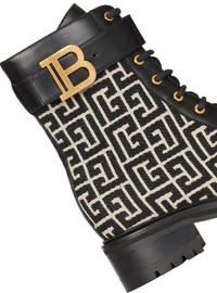 Jacquard Ranger ankle boots with black leather panels Lacing in front, detachable Balmain monogram ankle detail, gold-tone finish This style runs large: size down from your usual size Made in Italy Material: Calfskin Item: WN1TC502TJML