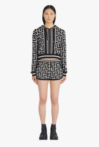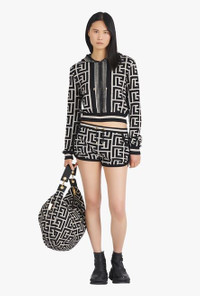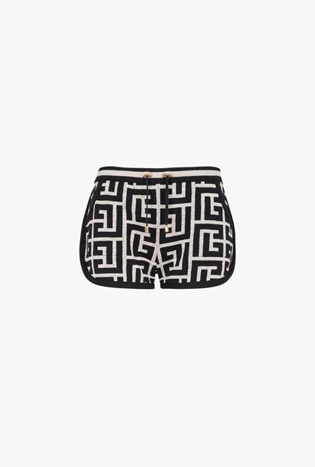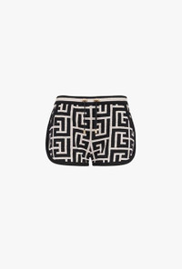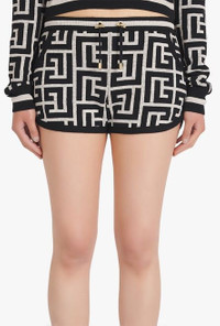 Ivory and black knit shorts Low rise, two pockets, elasticized waistband with drawstring ITEM INFORMATION - Casual cut - Fits true to size, select your usual size - The model is wearing FR size 36 - The model's height is 177 cm / 5 ft 9 1/2 in, bust 80 cm / 31,5 in, waist 60 cm / 23,5 in, hips 88 cm / 34,5 in - Made in France - Material: 55% Merino wool, 40% Linen, 5% Polyamide - Item: XF1OA005KB22GFE