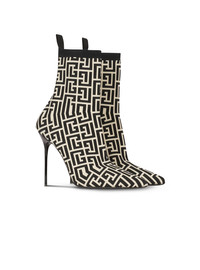 Bicolor stretch knit Skye ankle boots with Balmain monogram
