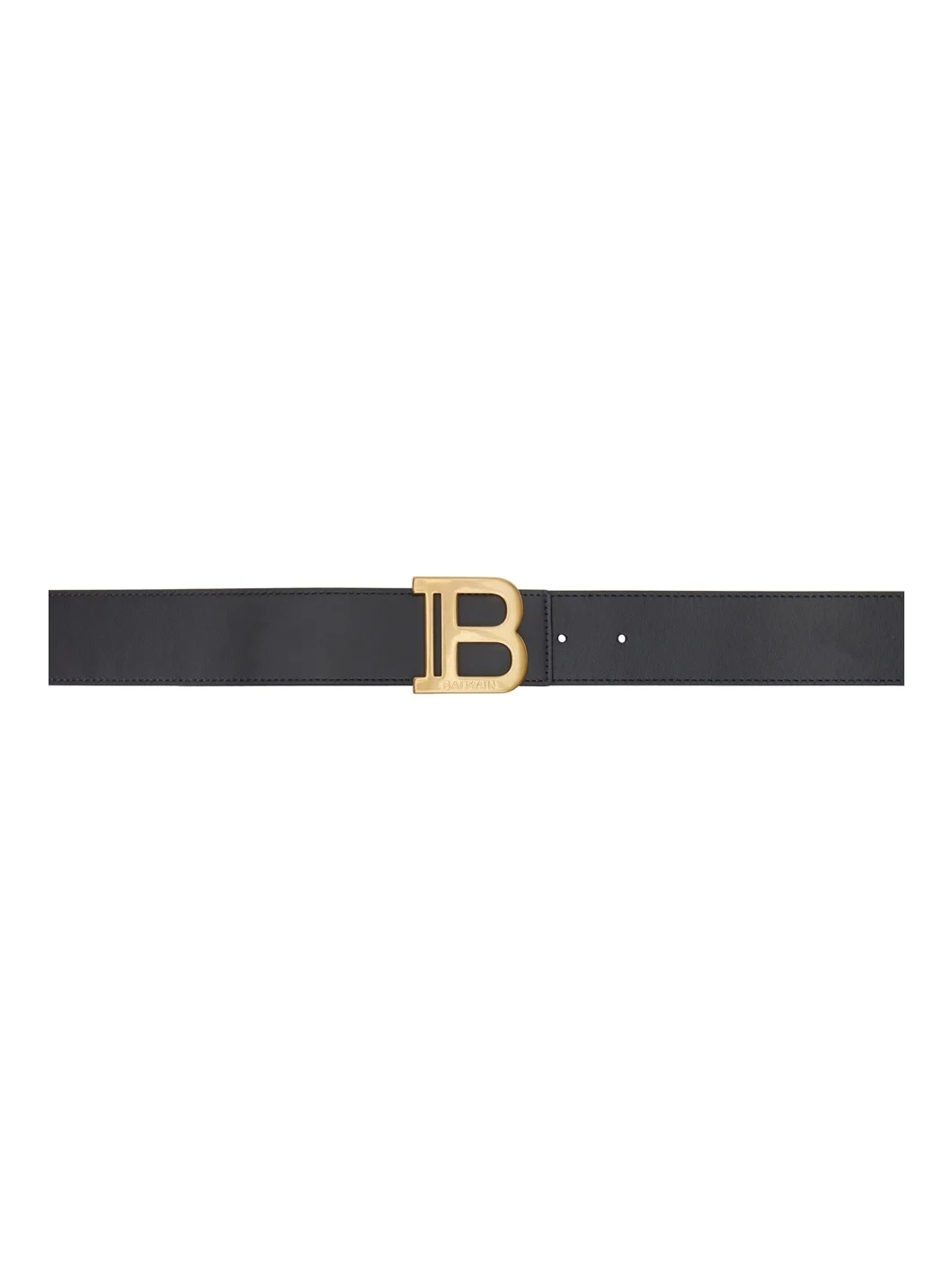 Buffed calfskin belt in black. · Logo hardware at post-stud fastening · Logo-engraved gold-tone hardware · W1.5" Supplier color: Noir