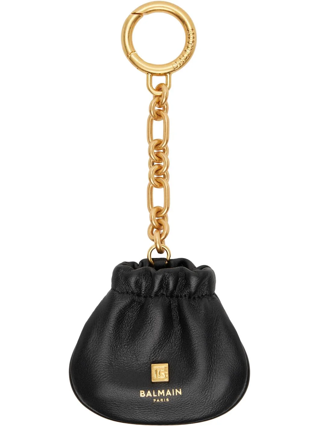 Grained lambskin keychain. · Hinged ring and cable chain at top · Logo hardware and stamp at face · Elasticized closure · Logo-engraved gold-tone hardware · H8.25” x W3.5” Supplier color: Black 100% lambskin. Made in Italy 261251F025002