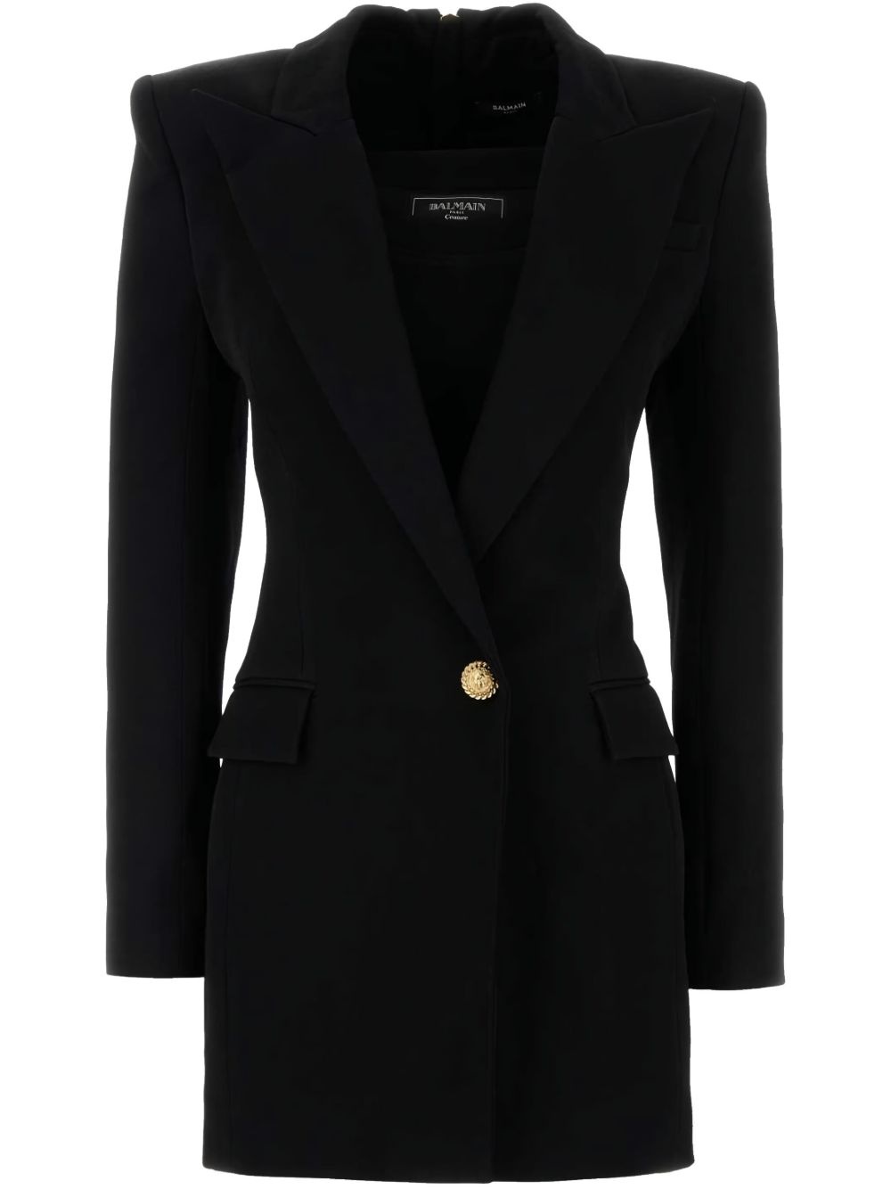 single-breasted blazer dress Highlights - Black - Rear zip fastening - Two front flap pockets - Buttoned-cuff sleeves - Plunging v-neck Imported Composition Lining: Viscose 52%, Cotton 48% Outer: Viscose 100%