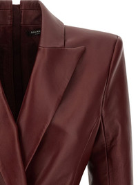 double-breasted leather mini dress Highlights - Bordeaux - Peak lapels - Flap pockets - Padded shoulders - Long sleeves - Back zip closure Imported Composition Leather 100% Washing instructions Read Manufacturer Guidelines