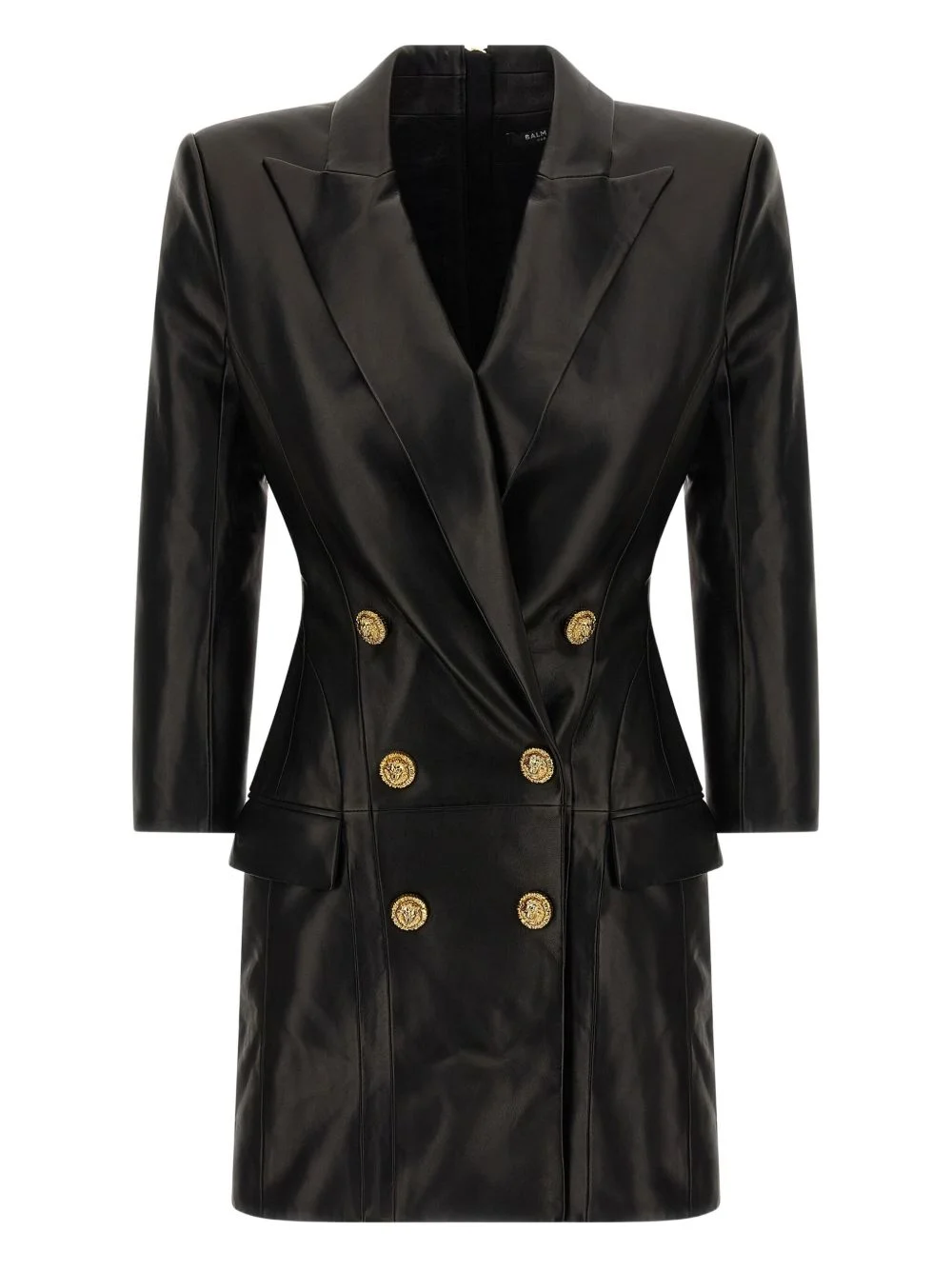 double-breasted mini dress Highlights - Black - Peak lapels - Flap pockets - Padded shoulders - Long sleeves - Back zip fastening Imported Composition Body: Leather 100% Washing instructions Read Manufacturer Guidelines