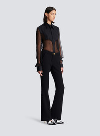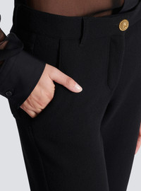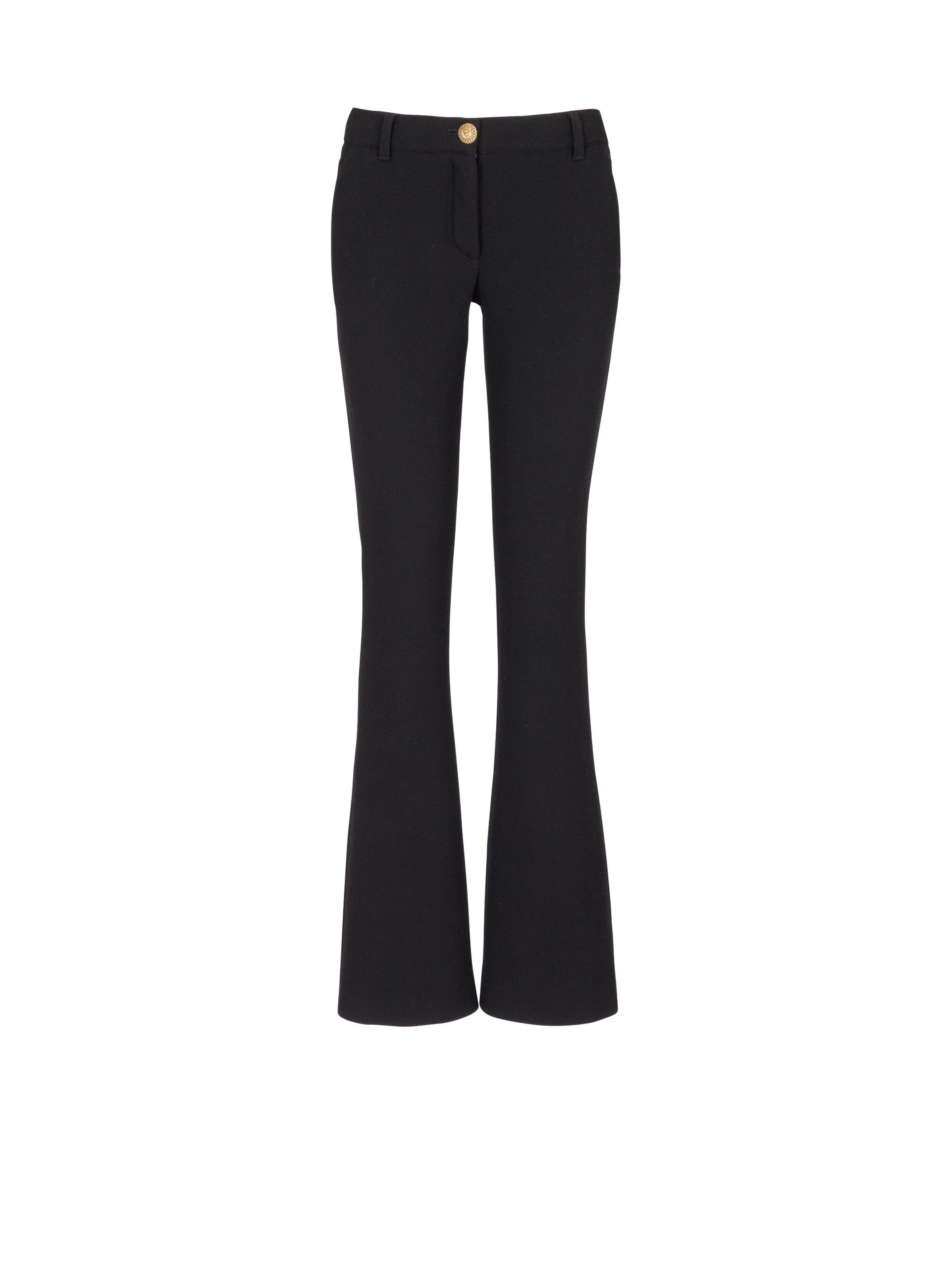 Crepe trousers - Slightly flared bootcut fit - Fastening with “Signature Lion” golden metal zip and button - 2 slanted pockets, 2 patch pockets at the back - Model measures 180cm and wears a size 36 - Main material: 100% virgin wool - Made in Slovakia - Item: CF1PP232WB86