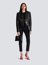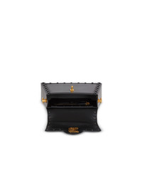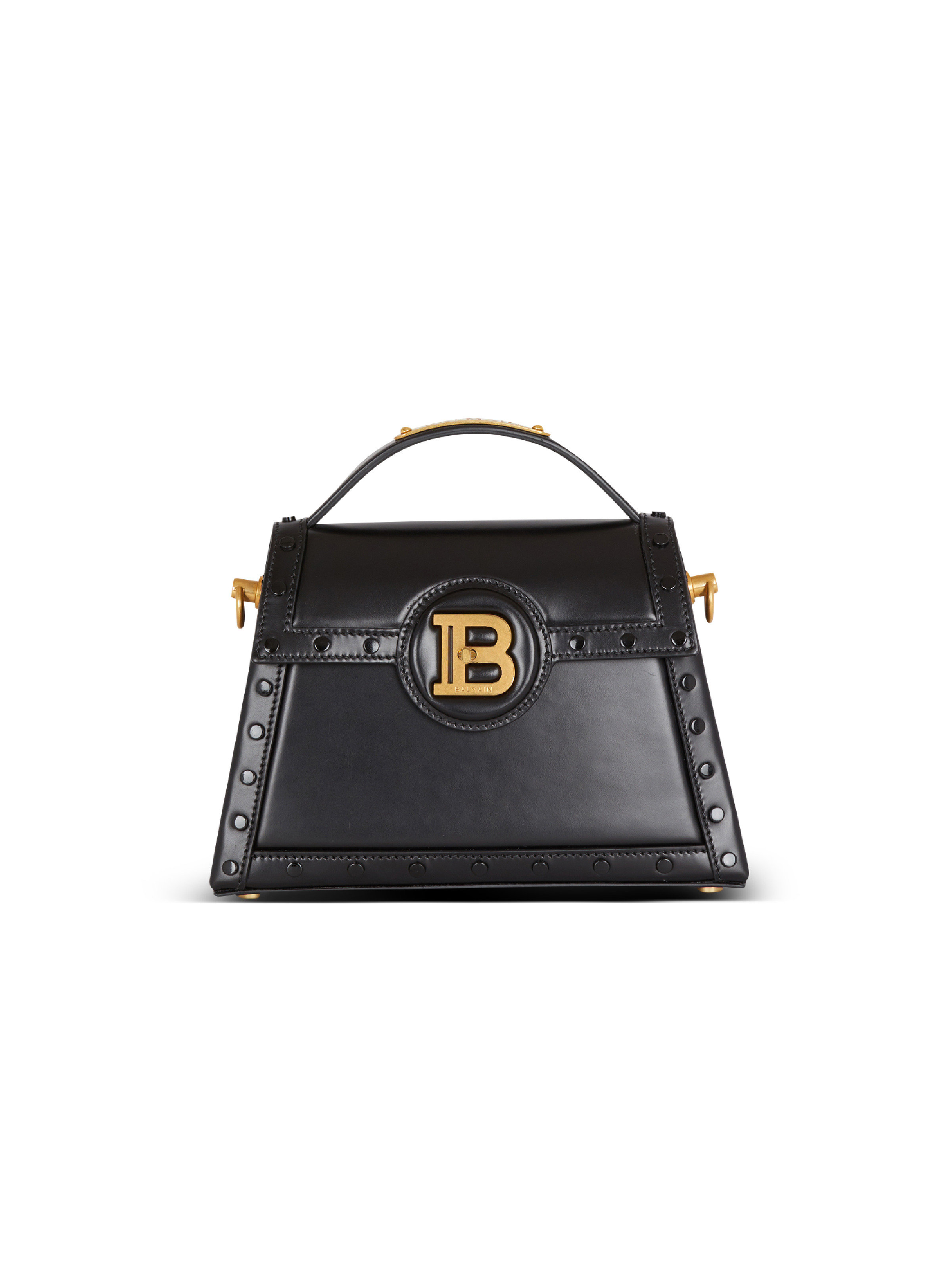 Box Leather B-Buzz Dynasty bag - Carry in the hand, on the shoulder or across the body - Leather handle, Balmain-engraved plaque - Slim, removable leather shoulder strap with snap hooks - Flap with quarter-turn B-Twist clasp - Patch pocket on the back - Inside zipped leather pocket - Embossed leather card pocket - Leather lining - Leather luggage tag with hidden mirror - Metal bag feet - Gold and black hardware - Dimensions: 23 x 16 x 7 cm - Shoulder strap: 100 cm - Main material: 100% calfskin leather - Made in Italy - Item: DN1DB910LRHA