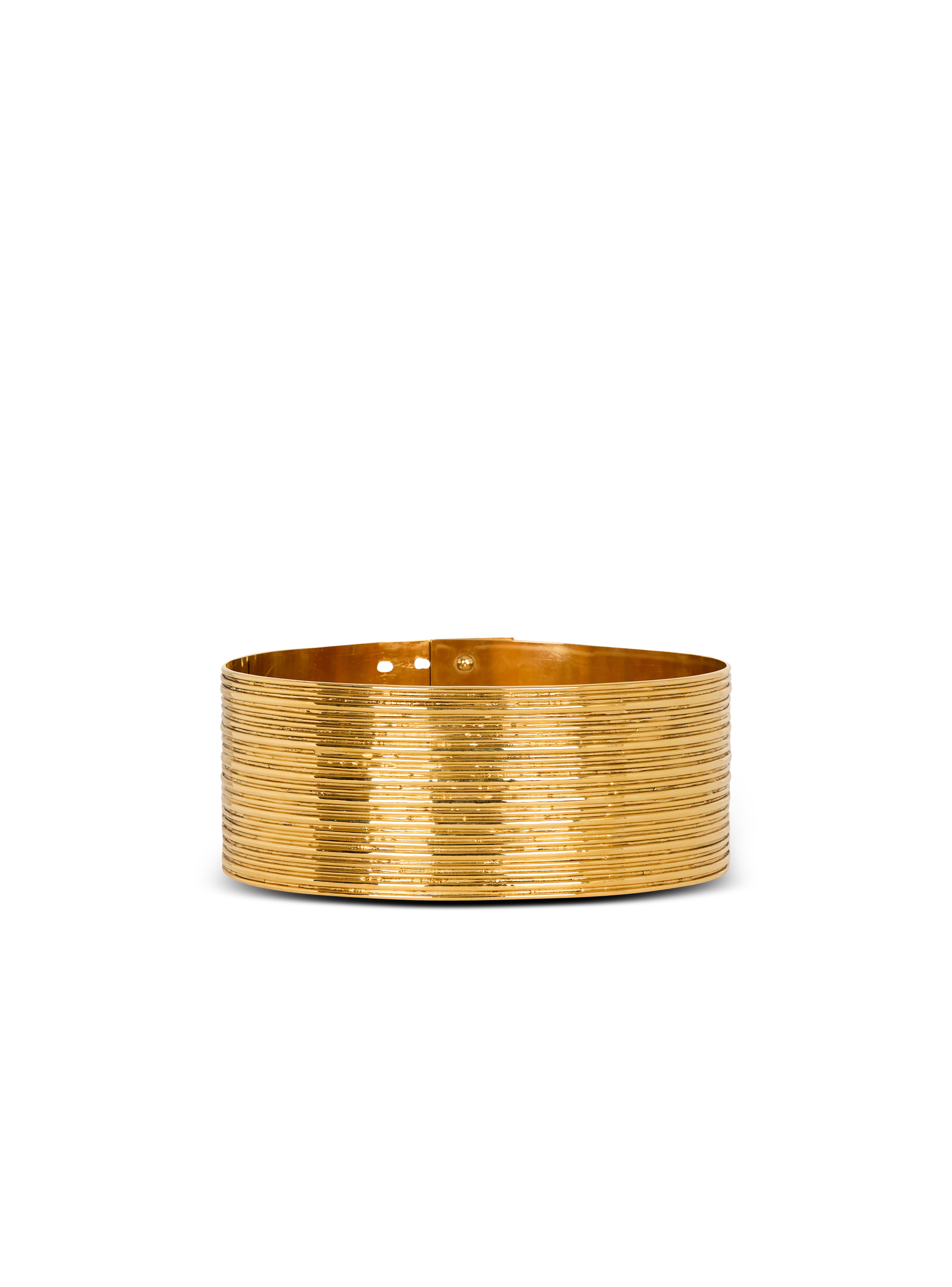 Wide brass Perfume waist belt - Striped gold metal style - Adjustable fastening, stud buttons - Width: 10 cm - Main material: 100% brass - Made in Thailand - Item: EN0WJ188MBRA