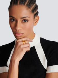 Brass Sync PB ring - PB logo on the front - Chain link shape on the sides - Semi-open design - Balmain Paris engraved on the inside - Main material: 100% brass - Made in Italy - Item: FN1XR526MBRA