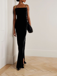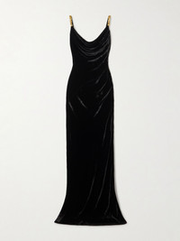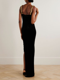 Embellished draped velvet maxi dress Black