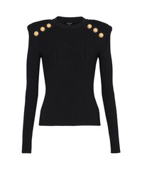 Knit jumper with button details - Fitted cut - Structured shoulders - Long sleeves - Round neckline - 6 decorative "Coin" buttons in gold metal - Ribbed edging - Model measures 180cm and wears a size 36 - Main material: 83% viscose 17% polyester - Made in Italy - Item: EF1KD001KB07100% of the viscose fibres used to make this garment come from certified, sustainably managed forests