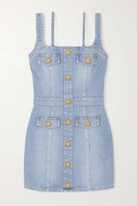 Button-embellished stretch-denim mini dress