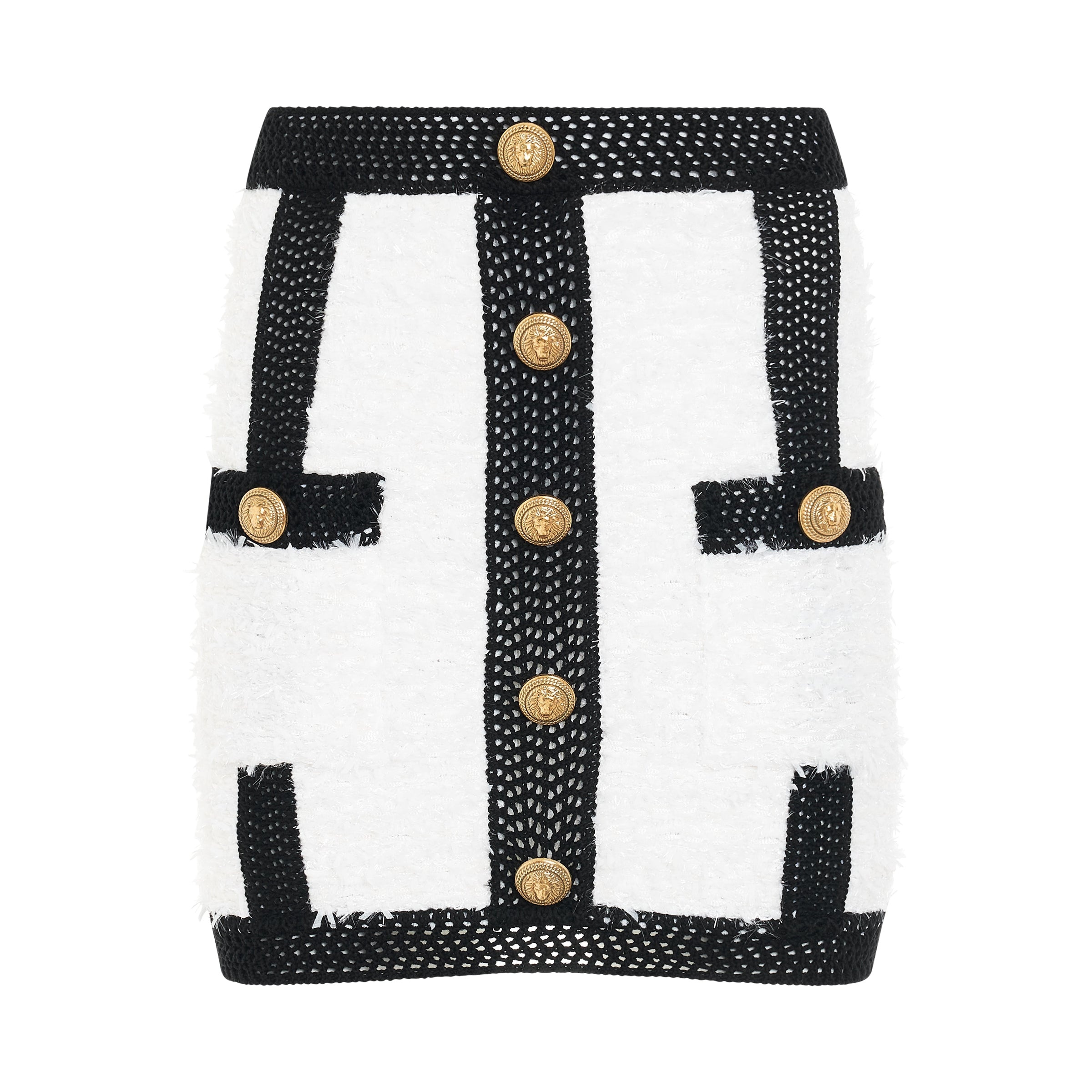 Achieve an effortlessly chic look with this tweed skirt. Crafted from wool blend material, it's designed with two front pockets, perfect for keeping your essentials and elevating your style. Take your wardrobe to the next level with this timeless piece. - Composition: 33% Polyamide, 32% Viscose, 27% Polyester, 8% Cotton - Tweed - Crochet panelling - Decorative button detailing - High-waisted - Rear zip fastening SKU: LB036KE87 GAB