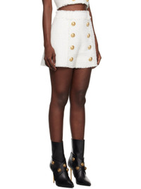 Nylon- and virgin wool-blend tweed shorts. Fringed detailing throughout. · High-rise · Belt loops · Two-pocket styling · Graphic hardware at front · Zip closure at back · Full viscose twill lining Supplier color: Blanc Body: 79% polyamide, 15% virgin wool, 6% cotton. Lining: 52% viscose, 48% cotton. Made in Poland 232251F088003