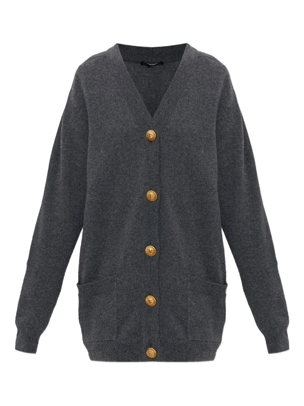 button pockets cardigan Highlights - Grey - V-neck - Round gold-tone buttons - Two front pockets - Ribbed cuffs - Ribbed hem Made in France Composition Cashmere 50%, Wool 50% Washing instructions Read Manufacturer Guidelines