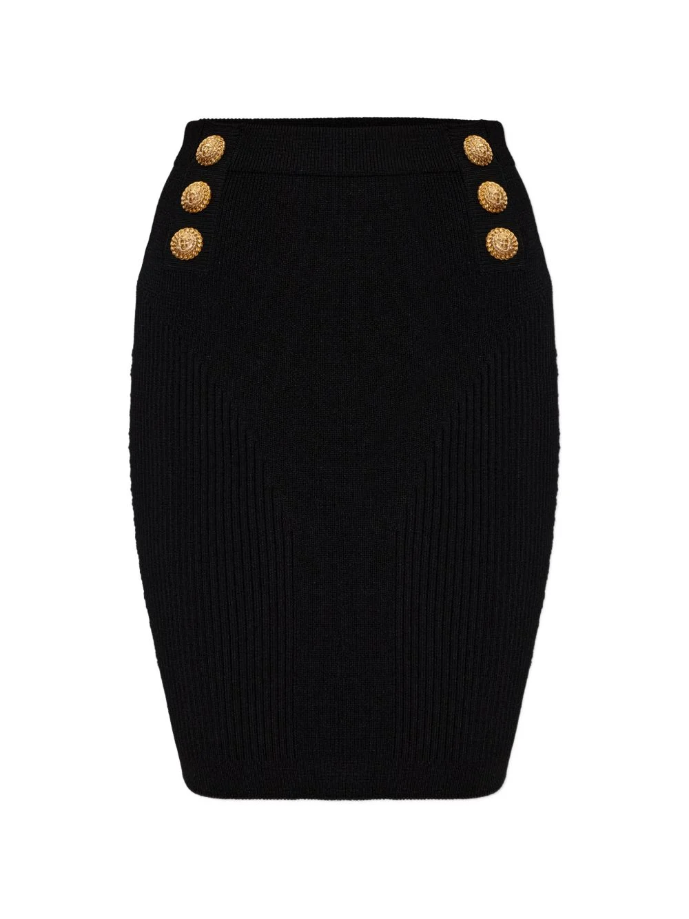 button ribbed skirt Highlights - Black - Ribbed knit - Gold-tone buttons - Pencil style Made in Italy Composition Viscose 84%, Polyester 16% Washing instructions Read Manufacturer Guidelines