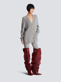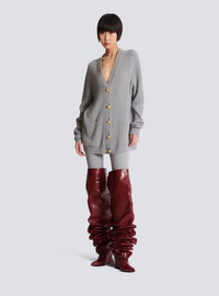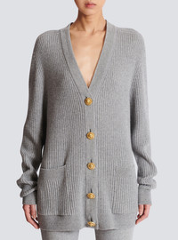 Long cashmere cardigan - Deep V-neck - Long sleeves - Gold "Lion Head" buttons - Patch pockets at the sides - Ribbed edging - Loose fit - Model measures 178cm and wears a size 36 - Main material: 50% cashmere 50% virgin wool - Made in France - Item: FF0KO003KJ17100% of the wool and cashmere fibres used to make this garment are recycled and certified