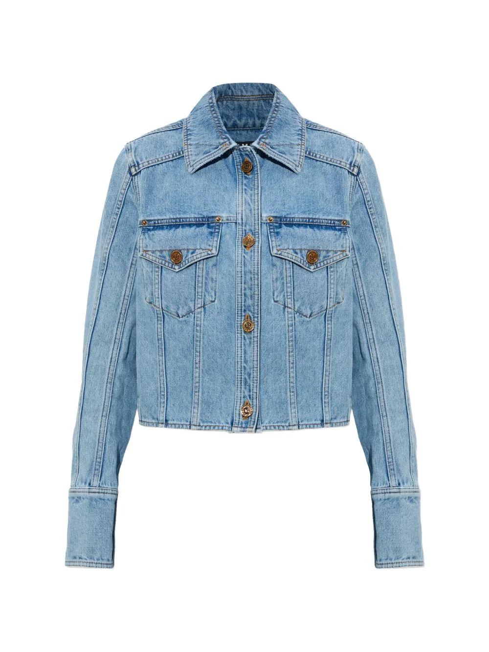 buttoned denim jacket Highlights - Light blue - Button fastening - Chest pockets - Buttoned cuffs - Pointed collar Made in Italy Composition Cotton 100% Washing instructions Read Manufacturer Guidelines
