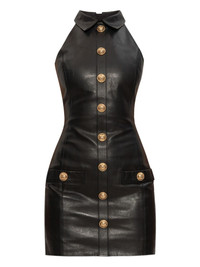 leather buttoned mini dress Highlights - Black - Lambskin leather - Gold button embellishments - Sleeveless - Halter neck - Concealed zip fastening Imported Composition Lamb Skin 100% Washing instructions Read Manufacturer Guidelines