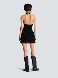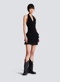 Ribbed knit and cable-knit halterneck top - V-neckline - Neck fastening with 4 golden metal "Coin" press studs - Ribbed trim - Cropped slim fit - Model measures 179cm and wears a size 36 - Main material: 83% viscose 17% polyester - Made in France - Item: FF1AB345KI50100% of the viscose fibres used to make this garment come from certified, sustainably managed forests