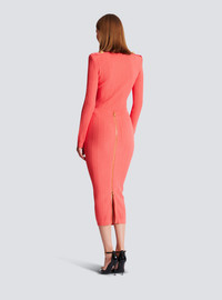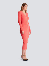 Ribbed and cable-knit skirt - 8 decorative buttons on the front - “Coin” golden metal button - Back fastening with visible golden metal double zip with Balmain Paris engraved sliders - Ribbed trim - Tight midi fit - Model measures 179cm and wears a size 36 - Main material: 83% viscose 17% polyester - Made in France - Item: FF1LD066KI50100% of the viscose fibres used to make this garment come from certified, sustainably managed forests