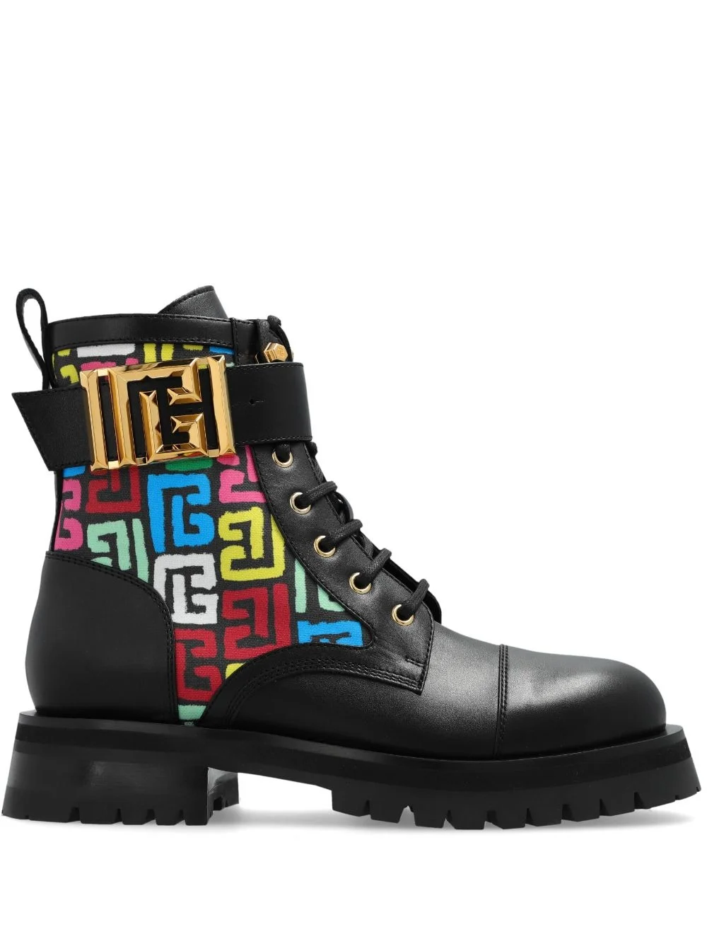 Charlie leather Combat boots Highlights - Black/multicolour - Calf leather/canvas - Panelled design - Signature pb monogram print - Gold-tone logo plaque - Pull-tab at the heel - Front lace-up fastening - Round toe - Ridged rubber sole - Ankle-length Made in Italy Composition Leather 100%