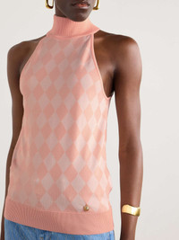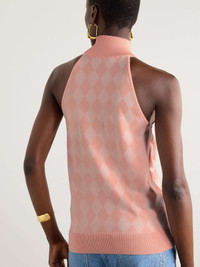 EDITORS'NOTES Balmain's sleeveless top is made from wool-blend jacquard in an argyle pattern. It's designed for a slim fit outlined by ribbed trims and has a cozy turtleneck, too. The two-tone palette is perfect for those with an appreciation for pink. SIZE & FIT Model measurements: - Fits true to size, take your normal size - Designed for a slim fit - Lightweight knit - Model is 177cm/ 5'10" and is wearing a FR 36 - Bust: 79cm/ 31" - Waist: 61cm/ 24" - Hip: 89cm/ 35" DETAILS & CARE - Tonal-pink wool-blend jacquard - Slips on - 62% wool, 35% viscose, 3% polyester - Dry clean