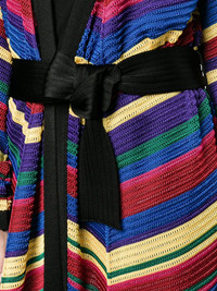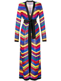 chevron long cardigan Multicoloured chevron long cardigan from Balmain featuring an open front, a tie waist, long sleeves, a striped pattern and a long length. Made in France Composition Viscose 100% SIZE & FIT Model measurements Height 5 ft 9 in(1.75 m) Bust/Chest 32.67 in(83 cm) Hips 36.22 in(92 cm) Waist 24.8 in(63 cm) Washing instructions Dry Clean Only