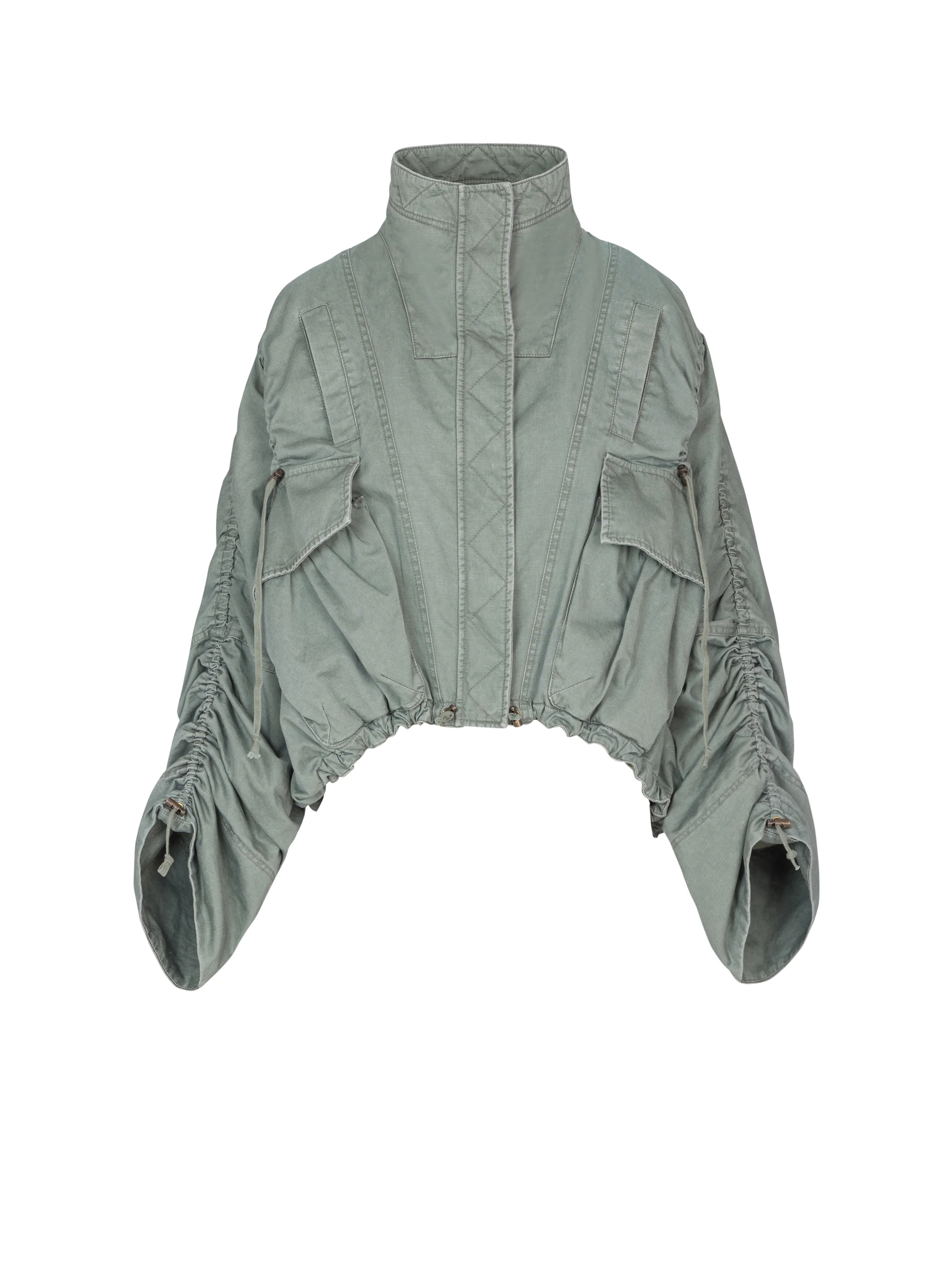 Cotton gabardine parka - Cropped, relaxed fit - Standing collar - Hidden placket fastening on the front with nylon zip and 5 metal press studs - Long, loose sleeves with adjustable drawstring ties - Double side pockets with flaps - Adjustable waist with drawstring ties - Stoppers and press studs in PB-engraved vintage metal - Vent in the back - Model measures 178cm and wears a size 36 - Main material: 100% cotton - Made in Italy - Item: GF0TI030CG65