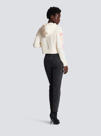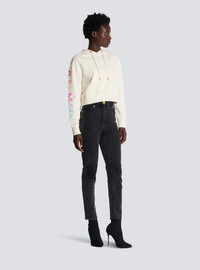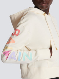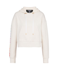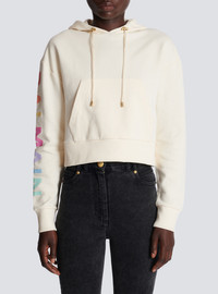 Cotton printed Balmain logo sweatshirt - Long sleeves - Drawstring hood - Ribbed cuffs and hem - Relaxed fit - This item fits true to size (select your usual size) - The model is wearing a size S - The model's height is 177 cm - Material: 95% cotton, 5% elastane - Made in Portugal - Item: YF0JP010BB80