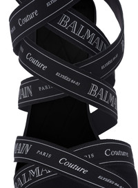 Couture suede heels with Balmain ribbon motif