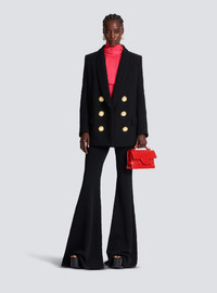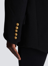 Crepe jacket - Straight cut - Shawl collar - Decorative buttons in mother-of-pearl and gold metal - Tailored cuffs, 5 Lion buttons in mother of pearl and vintage gold metal - 2 front flap pockets, 1 welt chest pocket - Slit at the back - Plain twill lining - Model measures 179cm and wears a size 36 - Material: 100% virgin wool - Made in Poland - Item: BF0SG093WB86